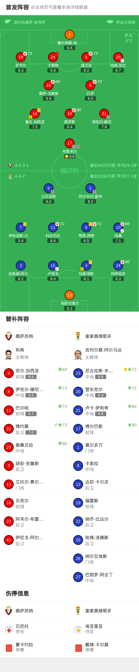 第75分钟,奥萨苏纳球员博约莫助攻布季米尔打入一球。
