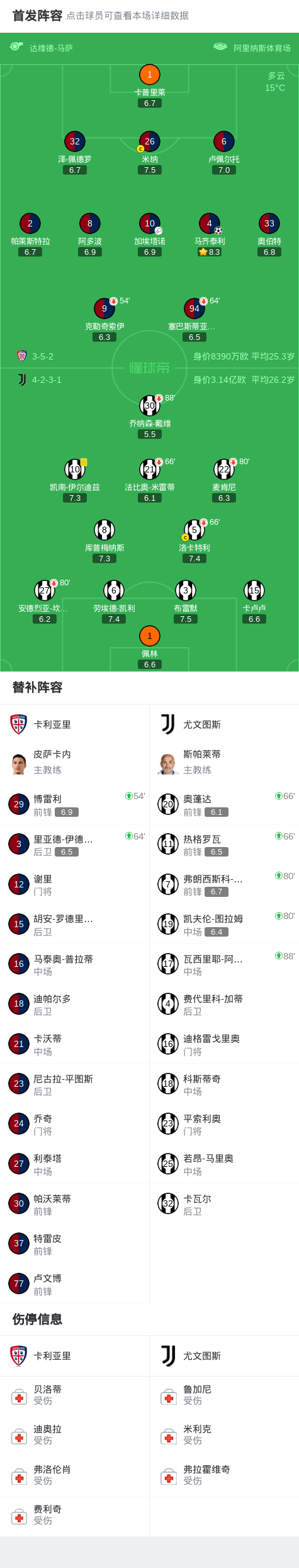 北京时间1月18日,意大利足球顶级联赛第21轮,卡利亚里坐镇主场迎战尤文图斯。上半场,两队均无建树。下半场,加埃塔诺开出任意球,马齐泰利半转身扫射得分。随后,伊尔迪兹射中折射后击中立柱。全场比赛结束,尤文客场0-1不敌卡利亚里。
