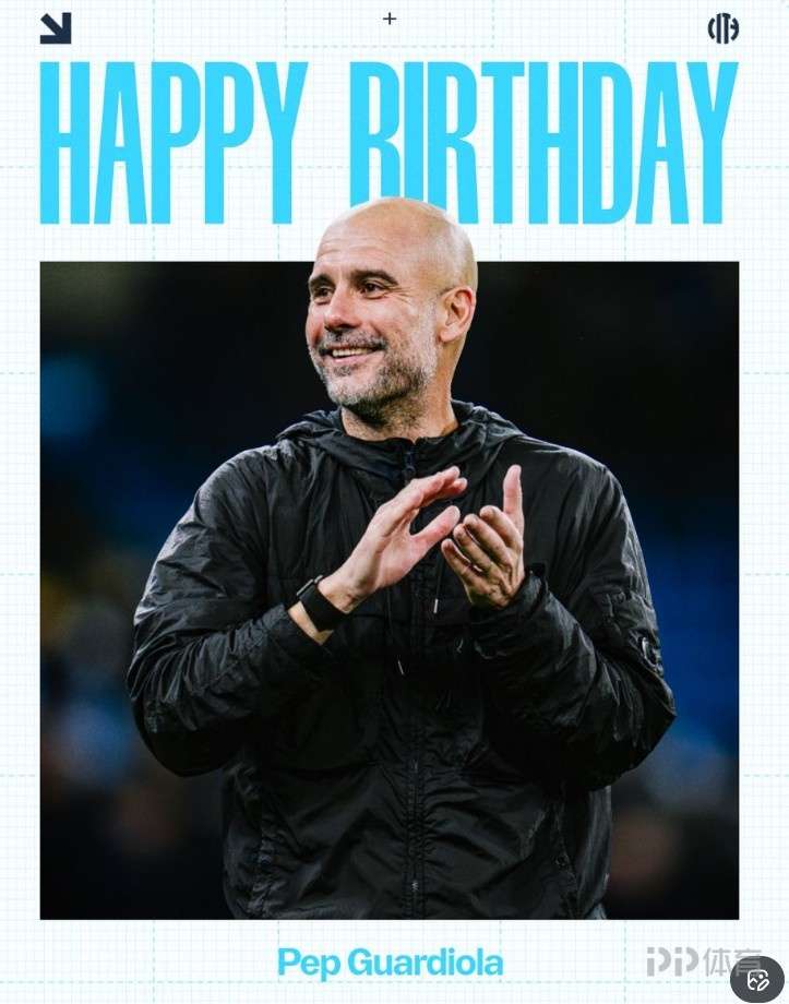 曼城官推晒海报祝瓜迪奥拉55岁生日快乐